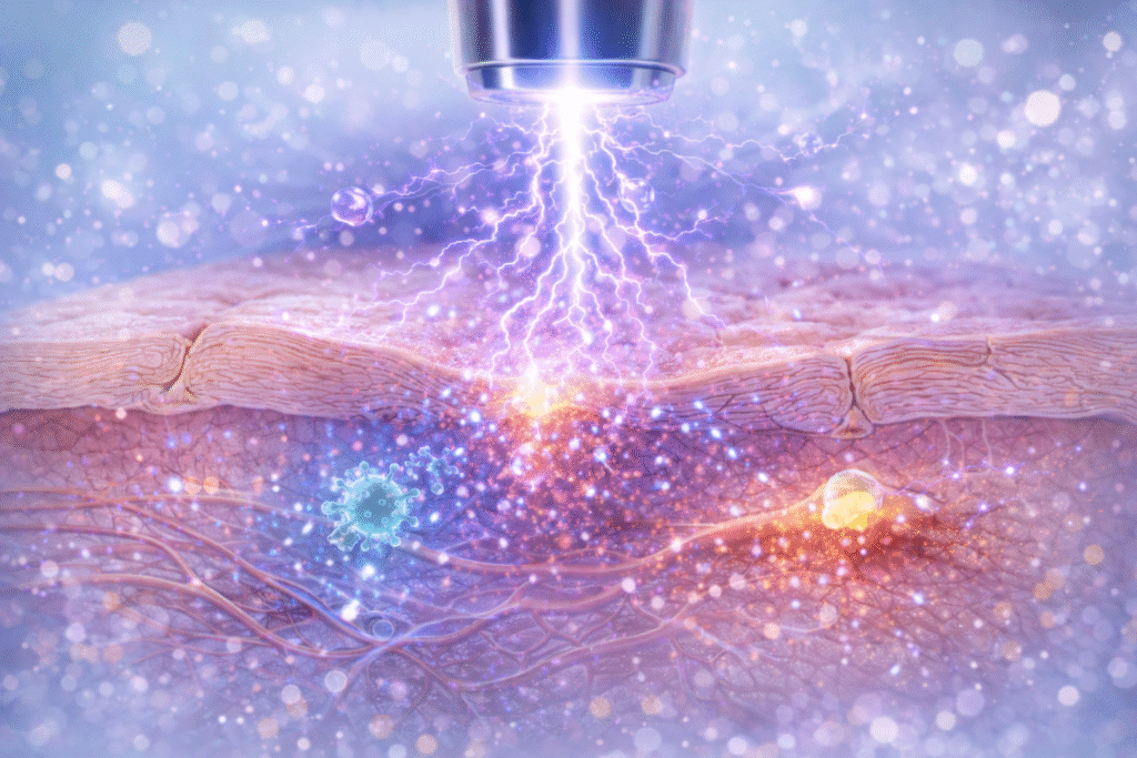 Az immunrendszert aktiválva stimulálja az új rugalmas kollagén rostok képződését, erősíti az érfalakat. Csökkenti a gyulladást, a herpeszt, aknét, kamaszkori bőrelváltozásokat hatékonyan kezeli, mélyszöveti fertőtlenítő hatása révén. Egy egyedülálló technológia, a negyedik halmazállapot (ionizált gáz) alkalmazásával. A keletkező plazmakisülés több mint 200 jótékony kémiai reakciót indít el.